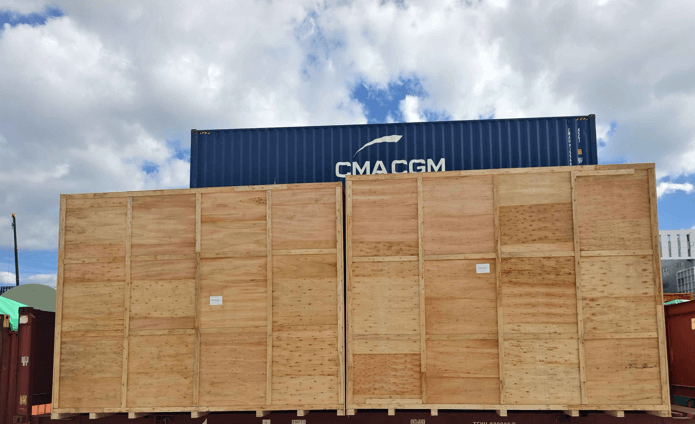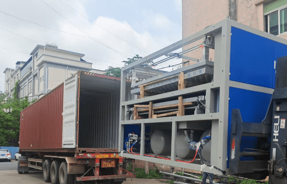 For less bigger machine,but much more higher than normal container. During loading, the top open container allows the machine to be lifted vertically by crane and precisely positioned inside the container. Once in place, it is secured with steel cables, chains, and wooden blocking to prevent movement during transit. A waterproof tarpaulin cover is applied over the top opening to protect the equipment from rain, dust, and seawater exposure.